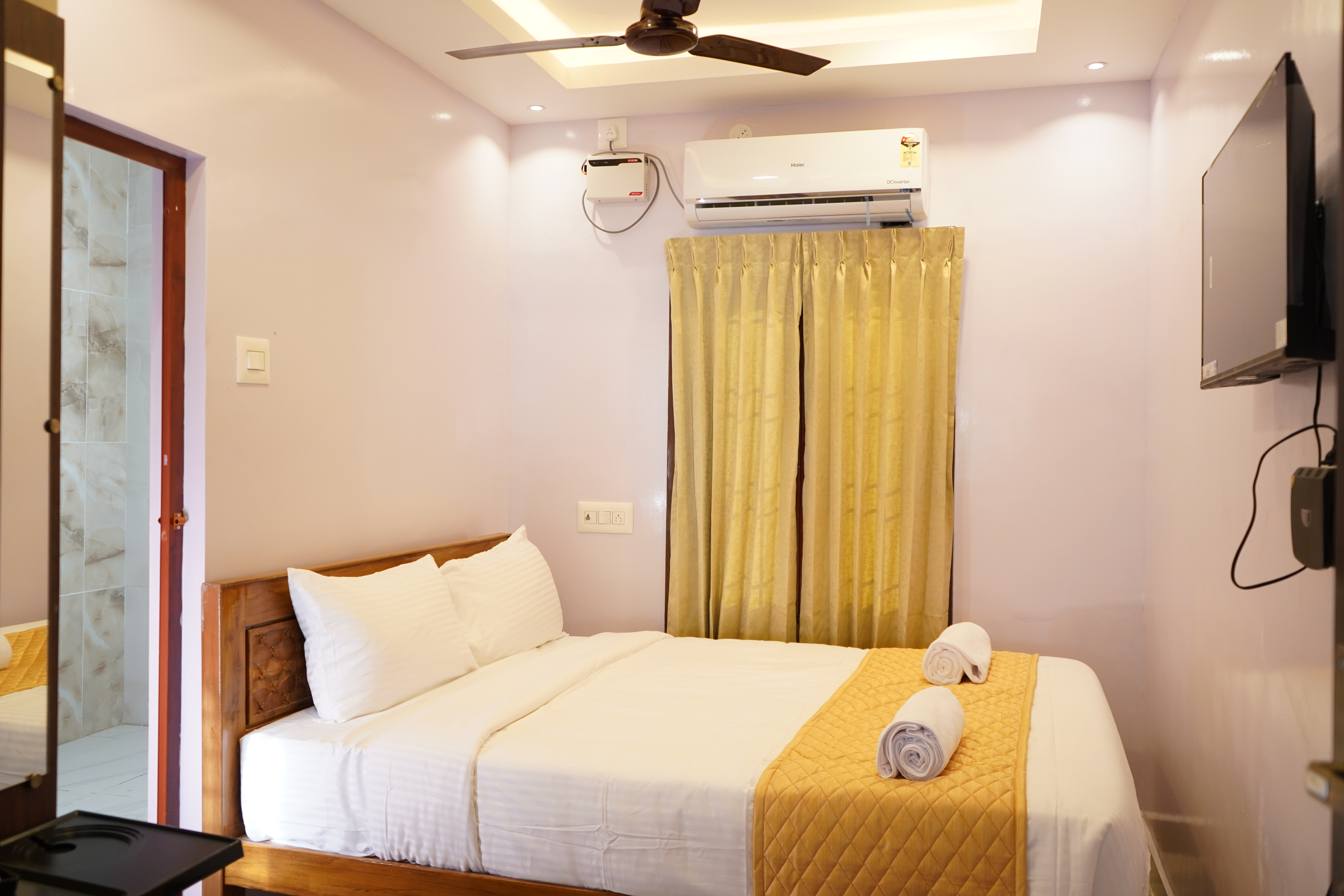 Unwind in a beautifully designed space featuring a sumptuous queen or king-size bed, dressed in premium linens for the ultimate relaxation. Stay connected and entertained with adjustable air conditioning, high-speed Wi-Fi and a android screen TV, right at your fingertips.